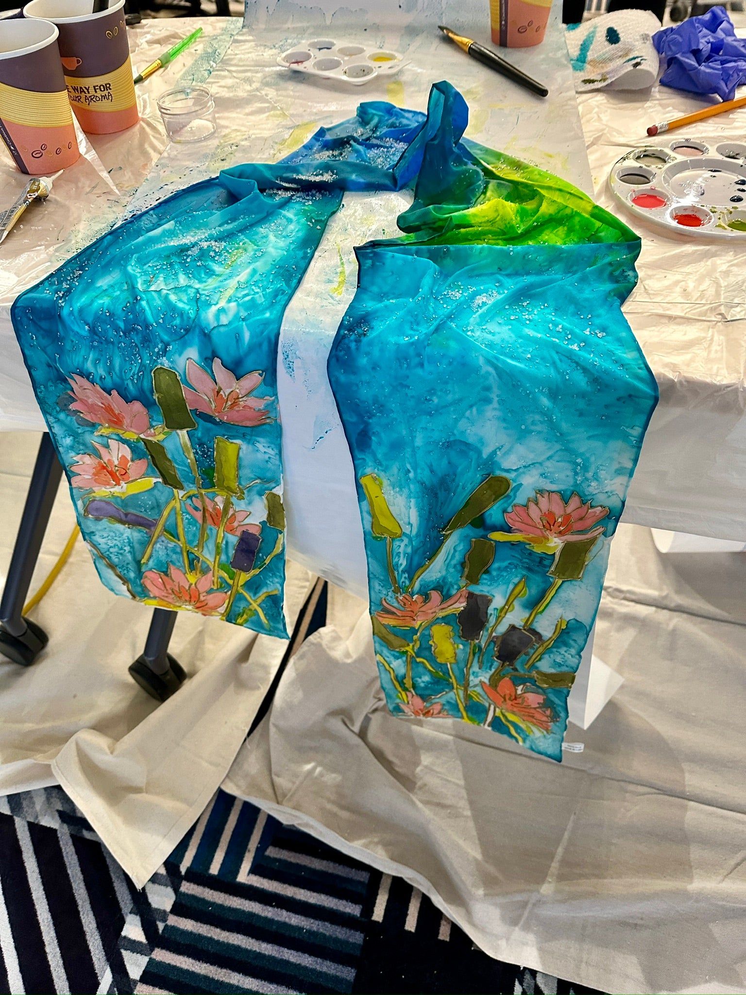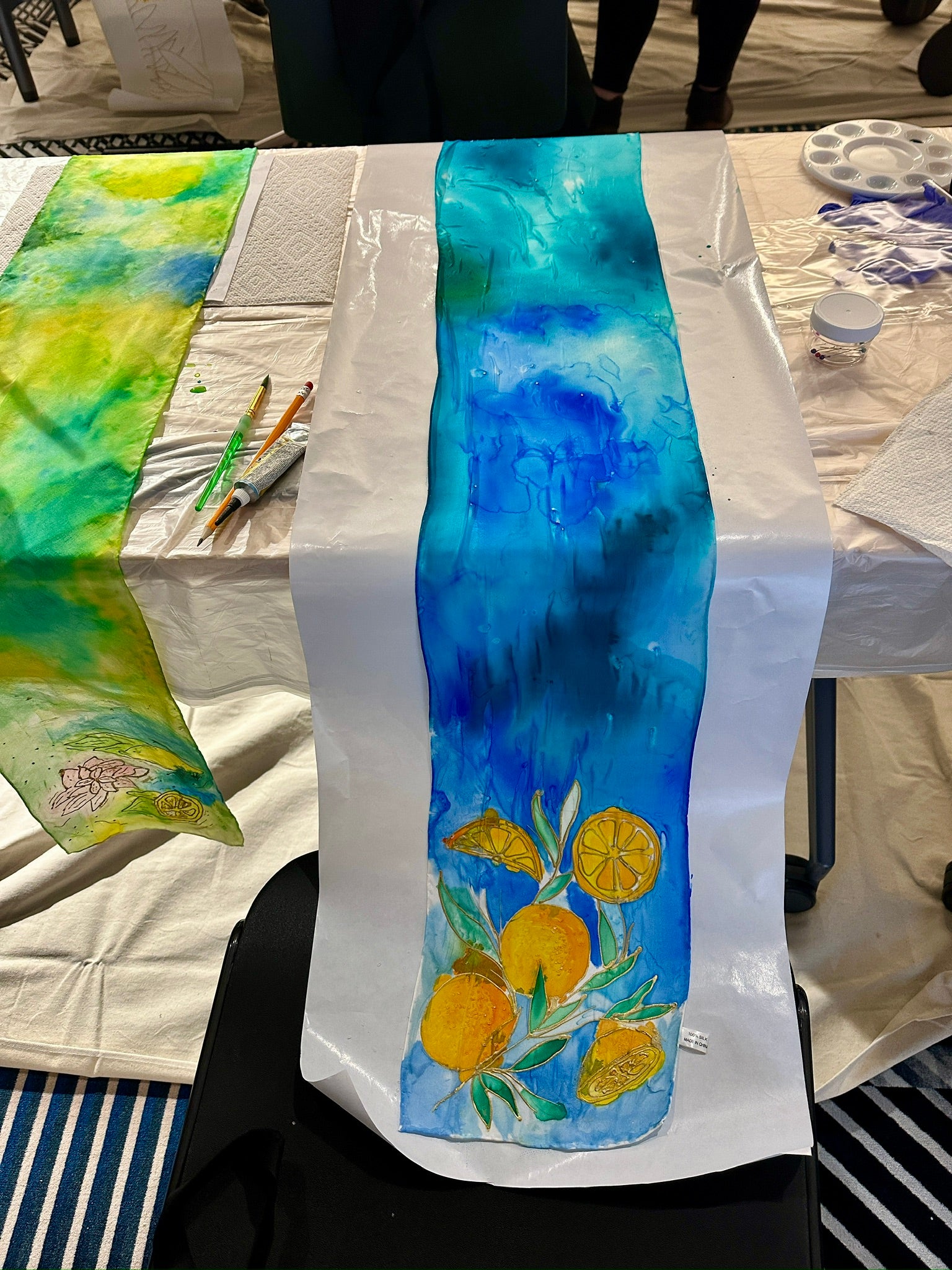 In this hands-on workshop, participants explore the art of painting on silk to create a one-of-a-kind, hand-painted scarf. Using silk paints and specialty techniques, the experience encourages creative exploration while introducing the unique qualities of working with silk.